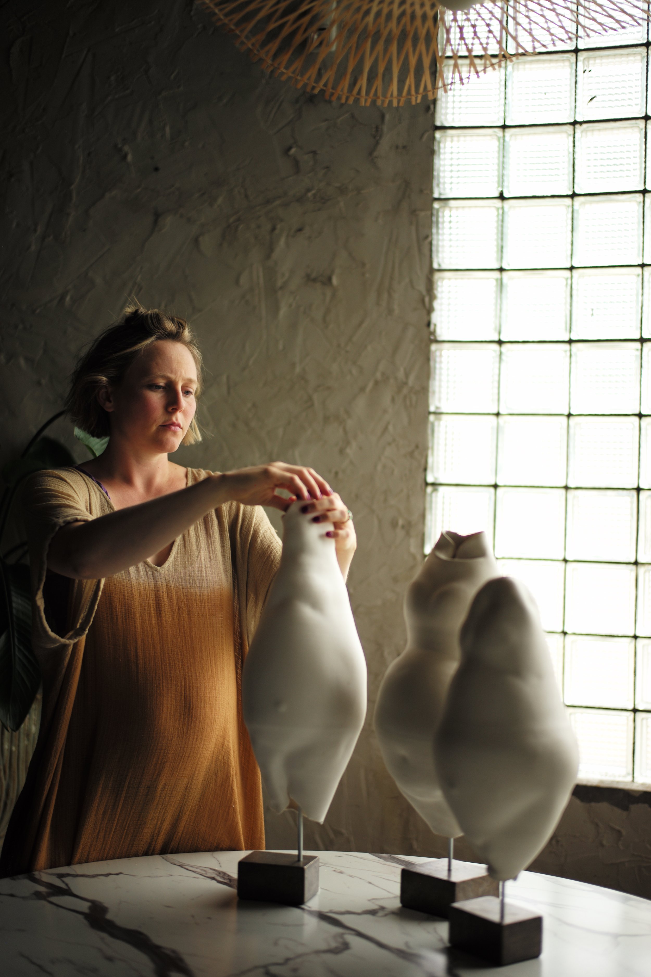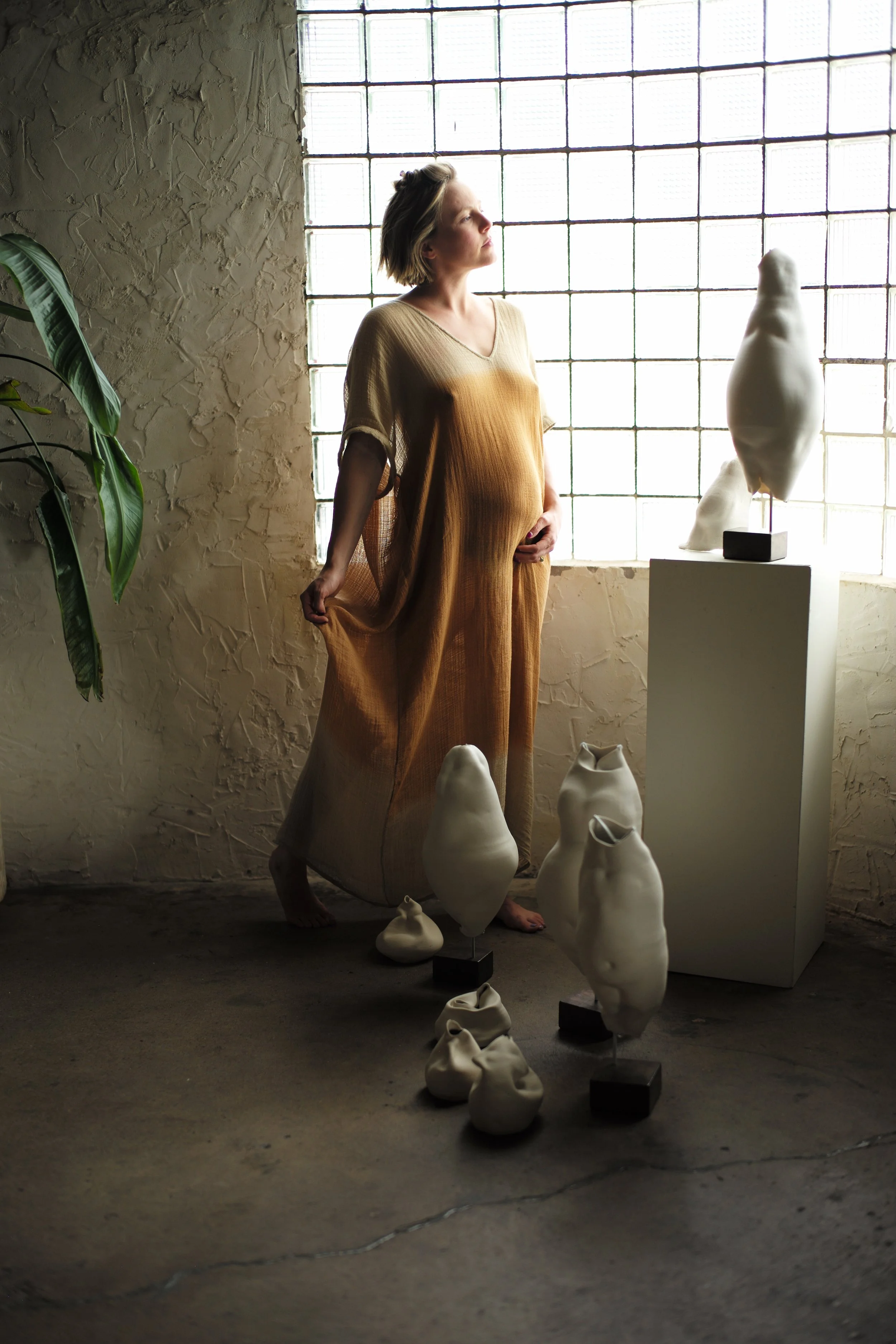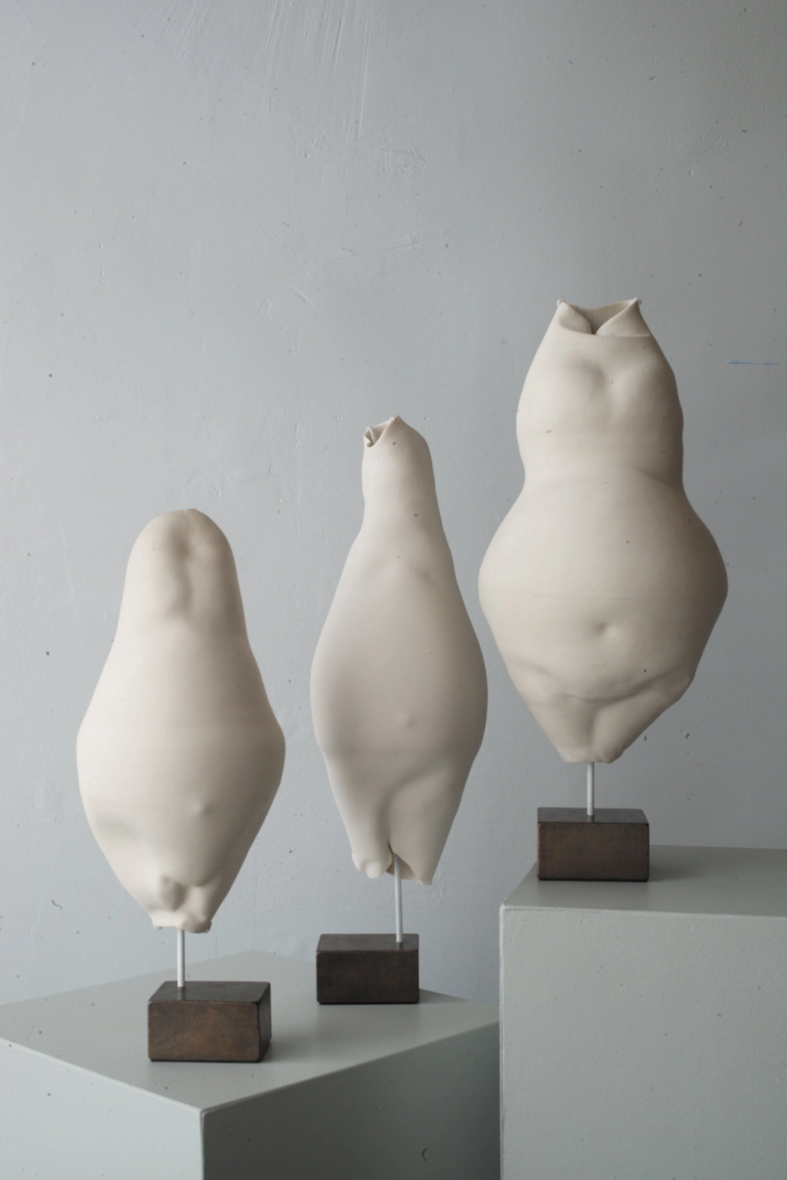 Bodies explores the intersection of matrescence (the physical, emotional, hormonal and social transition to becoming a mother), embodiment, and sacred mystery. The pregnancies and births of my three children simultaneously served as thresholds of a birth of my personal renaissance, inviting me to commune with the sacred in my body. Since these experiences, I am continually confronted with the primal power of the female body; realizing her strength, trusting her intuition, and reveling in the comfort of her fleshy softness as she participates in creation. Featuring a limited series of two ceramic sculpture collections, Bodies reflects the reclamation of the sacred feminine.